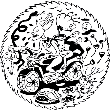 "I set out to create an image bursting with vitality. A scene that captures the constant transformation of our world as it shifts from night to day." Brecht describes. "I’ve always had a soft spot for gremlin-like creatures, beings that can transform just as nature does, so they became the spark for this artwork. From there, I imagined an organic character riding a vehicle, overflowing with movement and natural energy. On the back, another figure is enjoying a drink, and that detail is very intentional. Nearly half of our bodies are made of liquid, so what we consume matters. Fluidity, change, and motion are simply part of being alive, and I wanted every element in the illustration to resist stillness. The scene could unfold in daylight or darkness. The moon rests with its eyes closed, while a turtle in its shadowed shell stays wide awake. Some characters embrace chaos and race ahead. Others do their best to keep up. A few choose to hide for a moment, and that’s perfectly okay. This artwork is an invitation: to step into that spectrum of energy and motion, and to ride along in your own way."