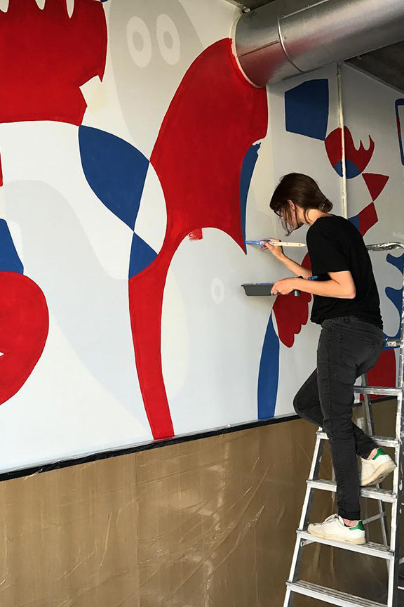 Mellon's illustrations always include a lot of detail, colour and little details. Tropical jungle plants, music and human portraits are recurring elements. She starts off with pencil on paper, but most of the work is coloured digitally. She finds it liberating to try new ways of drawing and to experiment with techniques, nonetheless striving to keep a recognizable Mellon feel to it all. In her personal work, she pushes this experimental desire even further, trying to break free from known techniques.